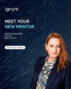 As part of this initiative, Melina Taprantzi, Founder of Earth and Co, has joined Ignyte’s prestigious network of mentors. Through her experience in strategy, sustainability and social innovation, she will support entrepreneurs in building future-fit businesses that combine impact with business growth.